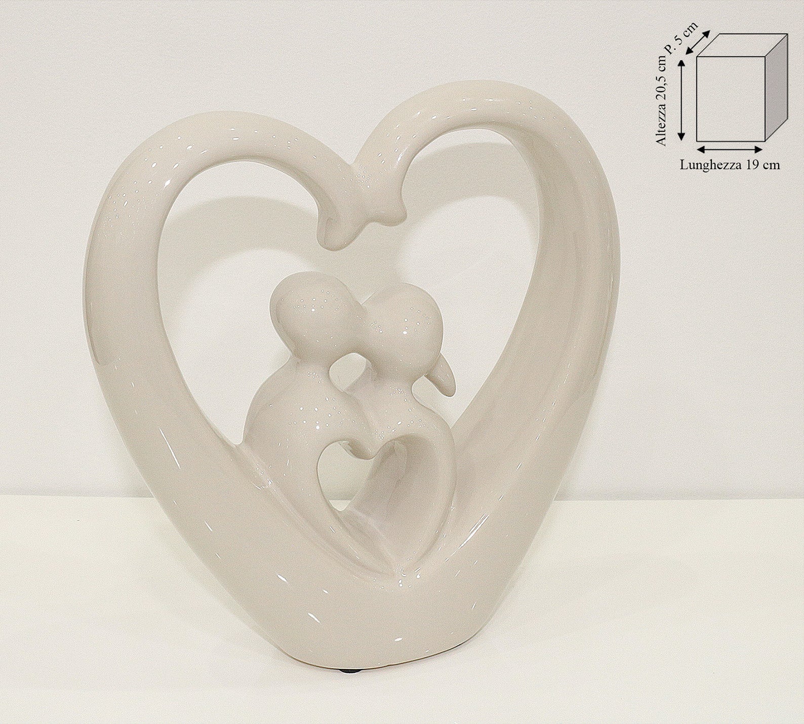 scultura cuore innamorati in ceramica tortora H 20cm